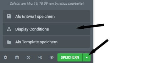 Überprüfen können Sie dies, indem Sie den Header bearbeiten und dann neben dem Speichern Button auf den „Pfeil nach oben“-Button und dann auf „Display Conditions“ klicken.
